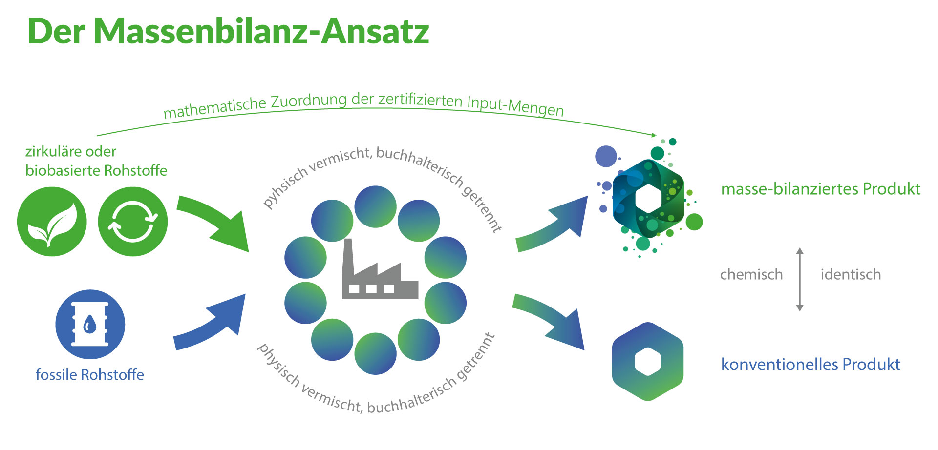 Das Konzept der Massenbilanzierung ermöglicht es, bereits zu Beginn der Wertschöpfungskette nachhaltige Rohmaterialien wie zB Bio-Naphta in bestehende, hocheffiziente Produktionsanlagen zu integrieren und so fossile Ressourcen schrittweise zu ersetzen. Der nachhaltige Rohstoff-Anteil wird rechnerisch bestimmten Endprodukten zugewiesen.